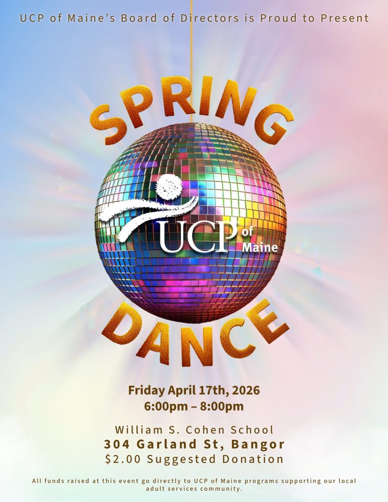 On Friday, April 17, 2026 from 6pm to 8pm, UCP of Maine’s Board of Directors presents UCP of Maine’s Annual Spring Dance at the William S. Cohen School located at 304 Garland Street in Bangor.